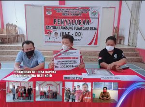 MINSEL,  MANADOLIVE. CO. ID– Bertempat di BPU Desa Kapoya kecamatan Sultra kabupaten Minahasa Selatan, hari ini jumat (18/02/22) Bantuan Langsung Tunai atau BLT yang bersumber dari Dana desa tahun anggaran 2022, ke-77 KPM warga Desa Kapoya disalurkan. Penyaluran cepat BLT kabupaten di-Minahasa Selatan, diapresiasi untuk ke-13 Desa, satu diantara adalah Desa kapoya yang dinakhodai oleh Plt Hukum Tua Osty Kojo