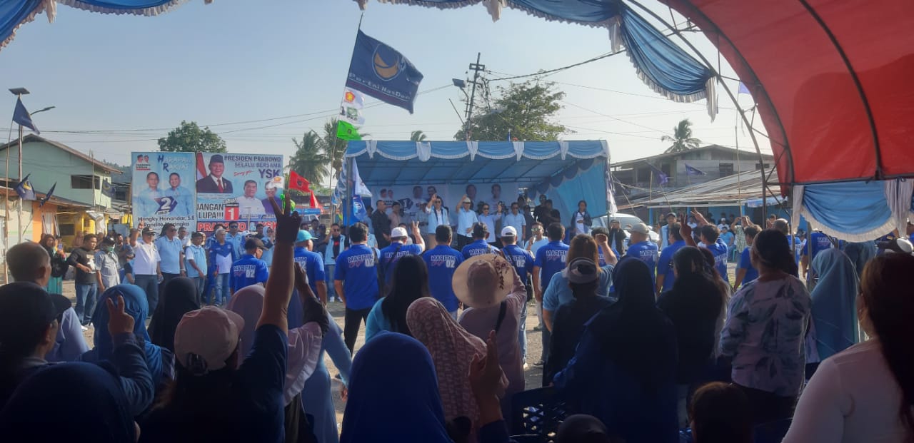 Salah satu titik lapangan Pasar Tua Kelurahan Bitung Tengah terpantau ratusan warga setempat antusias mendengar suara para orator.