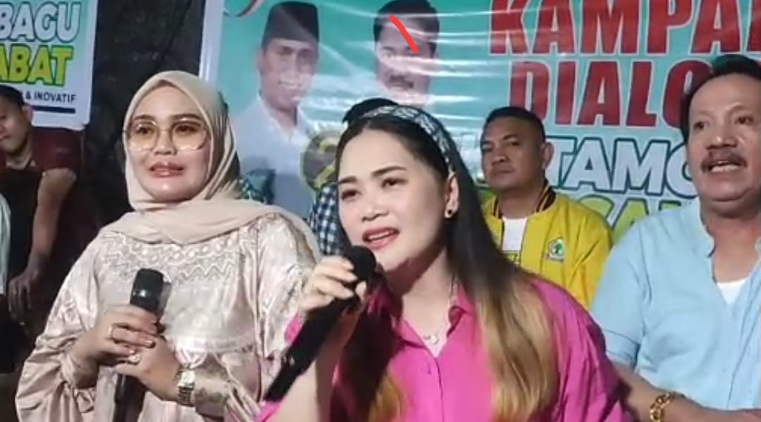 Tampak antusias gemuruh suara ratusan warga kampung baru, pendukung pasangan no urut 2 menikmati  penampilan Istri -Istri The Winner bak artis kawakan yang sedang menunjukkan suara emasnya.