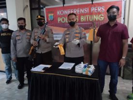 BITUNG, MANADOLIVE- Bertempat di lobi Mapolres Bitung hari Jumat 13 Mei 2022 digelar konferensi pers terkait tindakan penganiayaan dengan senjata tajam di Lingkungan 1 RT 03 Kelurahan Pinasungkulan Kecamatan Ranowulu.