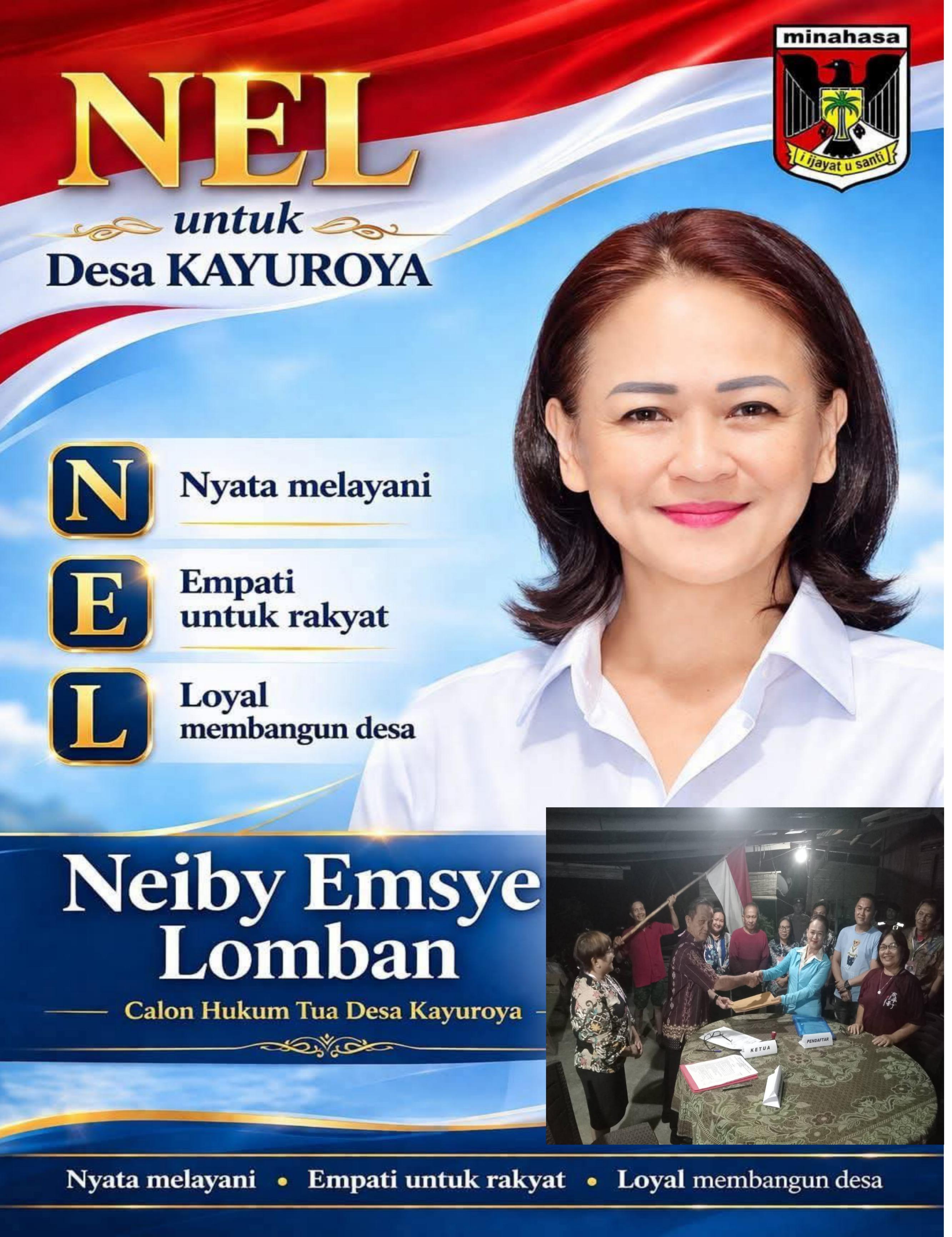 TOMOHON, MANADOLIVE.CO.ID- Calon hukum tua desa Kayuroya, Minahasa, Neiby Emsye Lomban (NEL) di dampingi suami dan anak-anak serta ratusan para simpatisan mendaftarkan diri ke panitia pendaftaran Hukum Tua Desa Kayuroya pada hari Sabtu tanggal (18/04-2026) sekitar pukul 17.30 Wita.