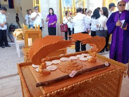 Bitung,MANADOLIVE.CO.ID- Setelah ditahirkan melalui ibadah khusus replika perkakas Bait Suci Dorbolaang Kecamatan Lembeh Selatan hari Sabtu 24 Februari 2024.