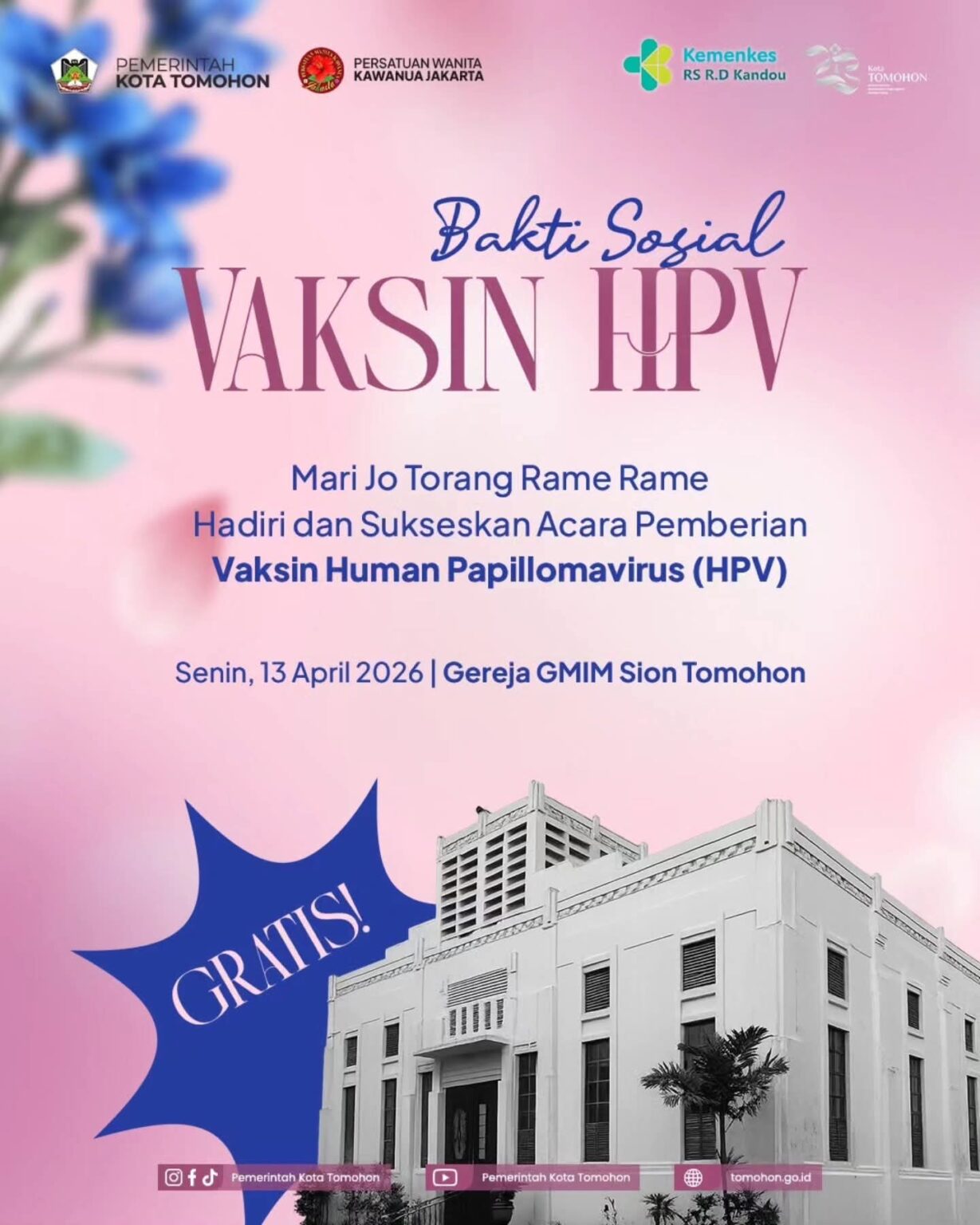 Pemerintah Kota Tomohon bekerja sama dengan Persatuan Wanita Kawanua Jakarta serta RSUP Prof Kandou mengadakan bakti sosial pemberian vaksin HPV.