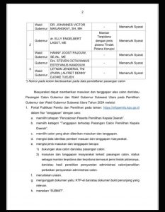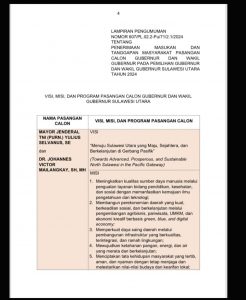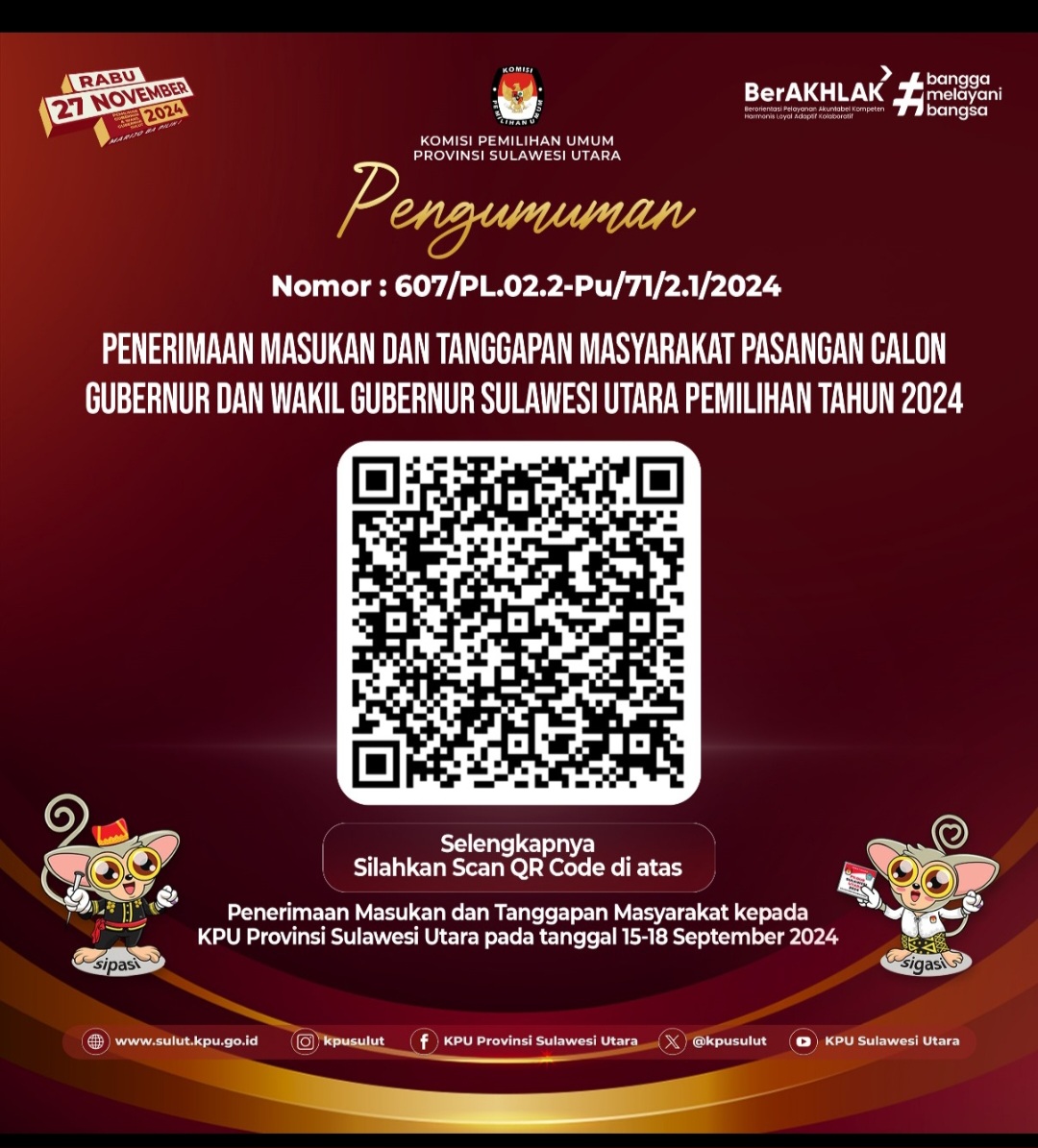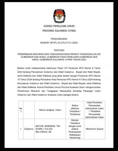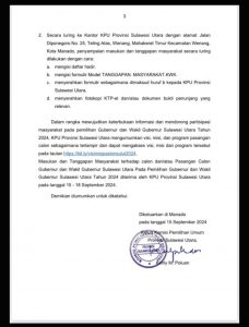 PENGUMUMAN PENERIMAAN MASUKAN DAN TANGGAPAN MASYARAKAT PASANGAN CALON GUBERNUR DAN WAKIL GUBERNUR SULAWESI UTARA PEMILIHAN TAHUN 2024