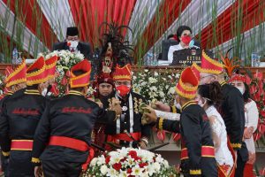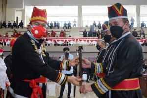 MINAHASA, MANADOLIVE CO ID– Bupati Minahasa Dr. Ir. Royke Oktavian Roring M.Si (ROR) dan Wakil Bupati Minahasa, Dr. (H.C) Robby Dondokambey, S.Si, (RD) bersama Ketua TP-PKK, Ny. Dra. Fenny Roring-Lumanauw, SIP dan Wakil Ketua TP-PKK, Ny. Martina Dondokambey-Lengkong, SE menghadiri Rapat Paripurna Dewan Perwakilan Rakyat Daerah Dalam Rangka Hari Jadi Minahasa Ke-593, yang di gelar di wale ne tou tondano. Jumat, (5/11/2021).