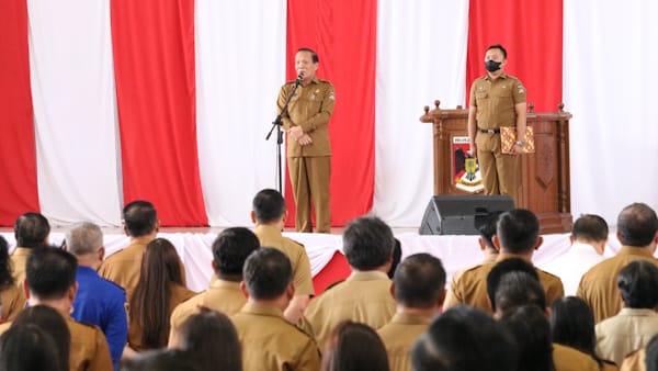 Apel tersebut dipimpin Sekretaris Daerah (Sekda), Frits Muntu SSos, dan dihadiri para pejabat eselon ll, lll, dan lV, serta staf di lingkungan Pemkab Minahasa.