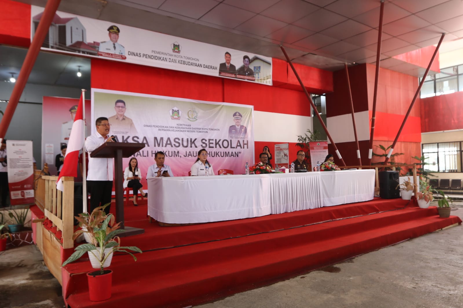 Penjabat Sementara Walikota Tomohon Ir Fereydy Kaligis MAP menghadiri sekaligus membuka kegiatan Jaksa Masuk Sekolah ” Kenali Hukum, Jauhi Hukuman”.