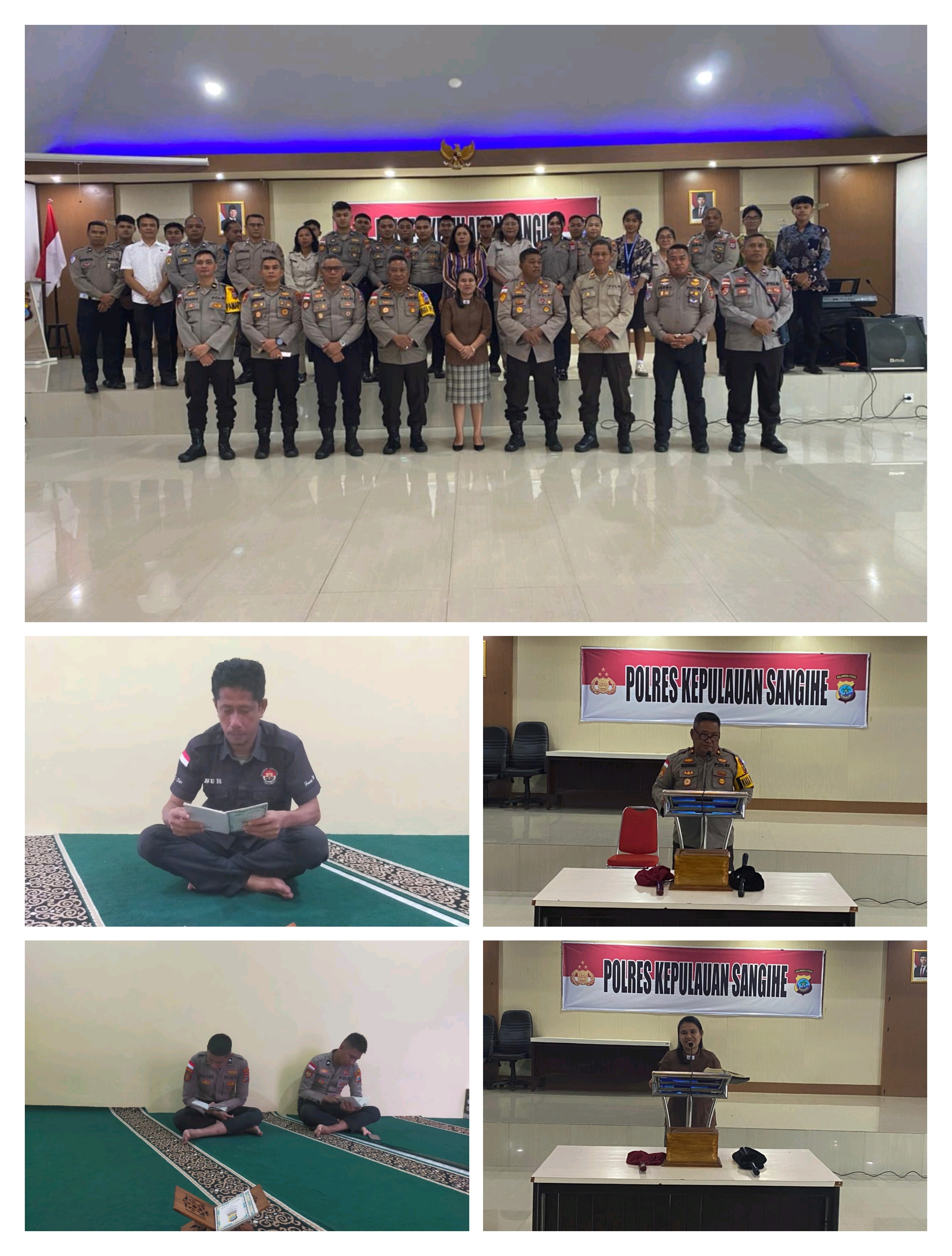 Tahuna manadolive.co.id — Polres Kepulauan Sangihe kembali melaksanakan kegiatan rutin Ibadah Pembinaan Rohani dan Mental (Binrohtal) bagi seluruh personel yang beragama Islam dan Kristen, Kamis (20/11/2025). Kegiatan ini digelar secara terpisah di dua lokasi, yakni Musala Al-Insyiroh dan Aula Sanika Satyawada Polres Kepulauan Sangihe.