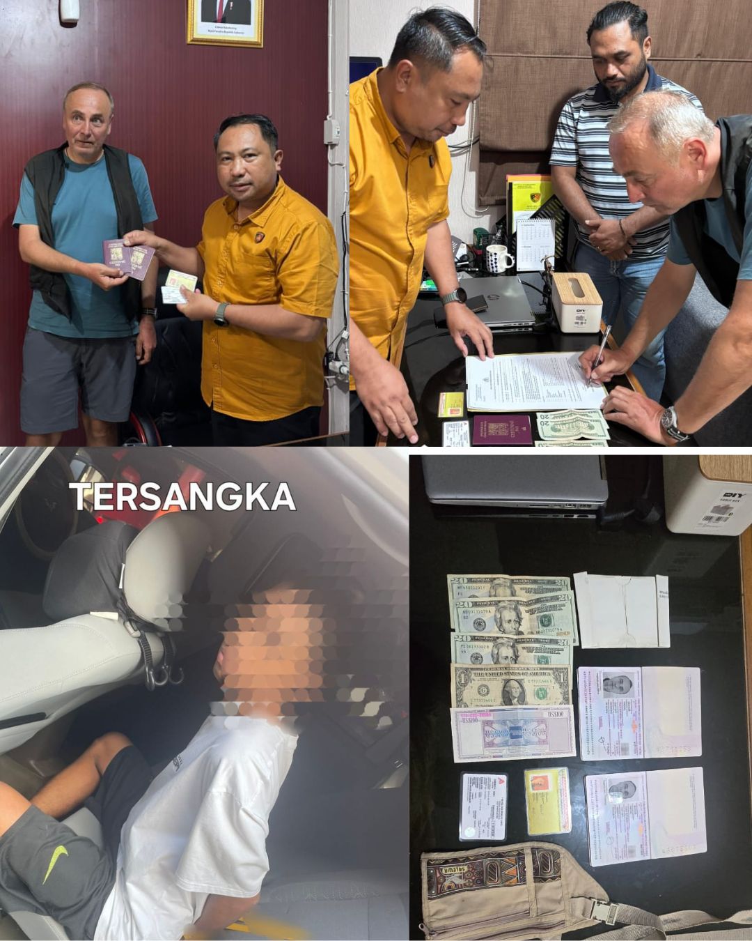 Menurut keterangan korban, saat memasuki kamar rumahnya, ia mendapati seorang pria tidak dikenal sedang membongkar pakaian di rak lemari. Ketika ditanya, pelaku sempat menjawab sedang mencari anak korban bernama Adam, namun kemudian melarikan diri ke arah hutan. Setelah memeriksa isi kamar, korban mendapati sejumlah barang penting telah hilang, antara lain dua paspor, kartu izin tinggal, traveler cheque senilai 100 dolar AS, uang asing senilai 100 euro, serta beberapa perlengkapan drone yang telah terbongkar.