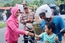 Kapolres Kepulauan Sangihe, AKBP Abdul Kholik, S.H., S.I.K., M.A.P., bersama Ketua Bhayangkari Cabang Sangihe, Ny. Adellia Kholik, serta Pejabat Utama (PJU) Polres, membagikan 100 paket takjil kepada pengguna jalan yang melintas.