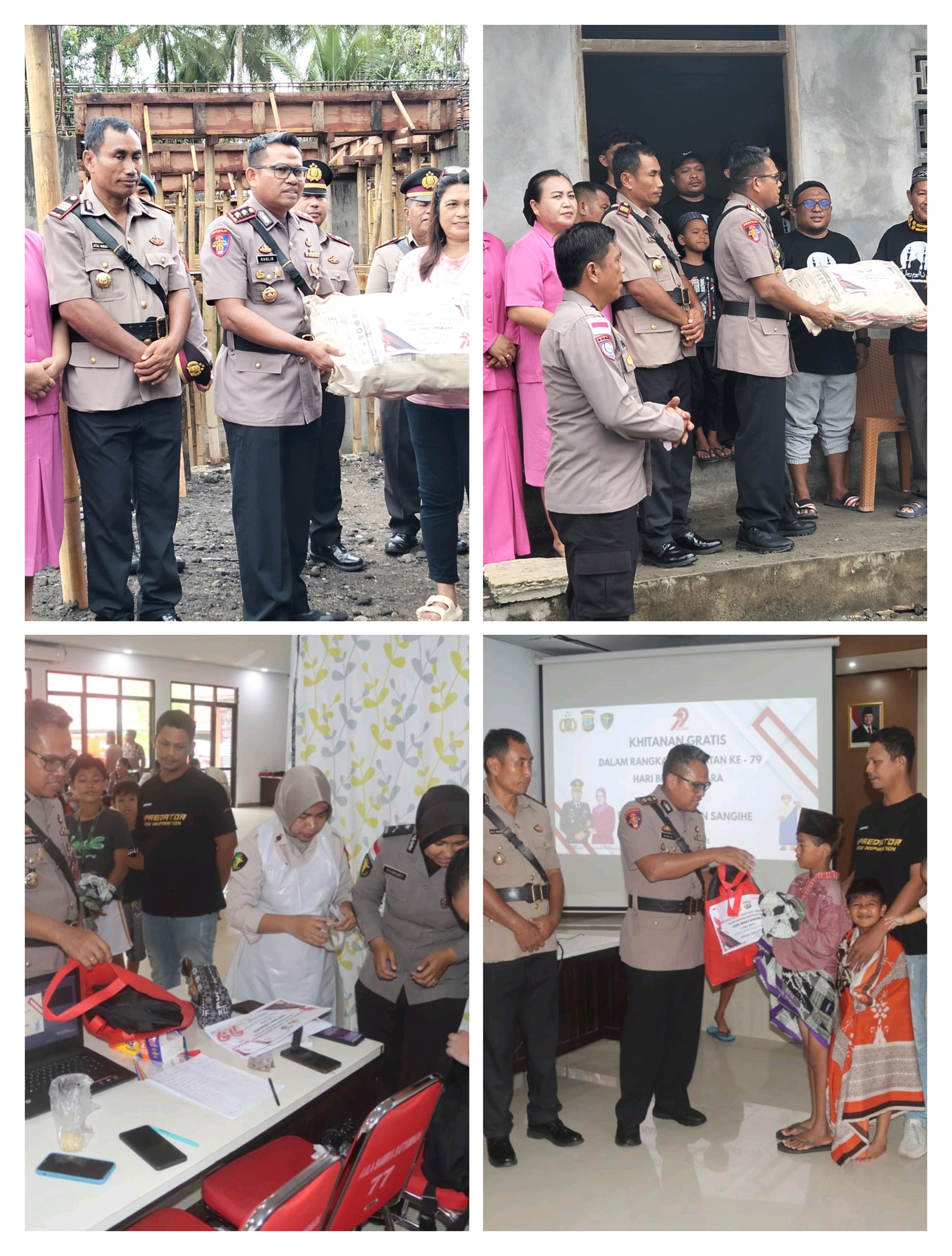 Selain bakti religius, Polres Sangihe juga menggelar kegiatan khitanan massal gratis yang berlangsung di Aula Sanika Satyawada Polres Sangihe. Puluhan anak-anak dari berbagai wilayah mengikuti layanan sunat gratis ini, yang dilaksanakan oleh tim medis gabungan Polres dan Dinas kesehatan .