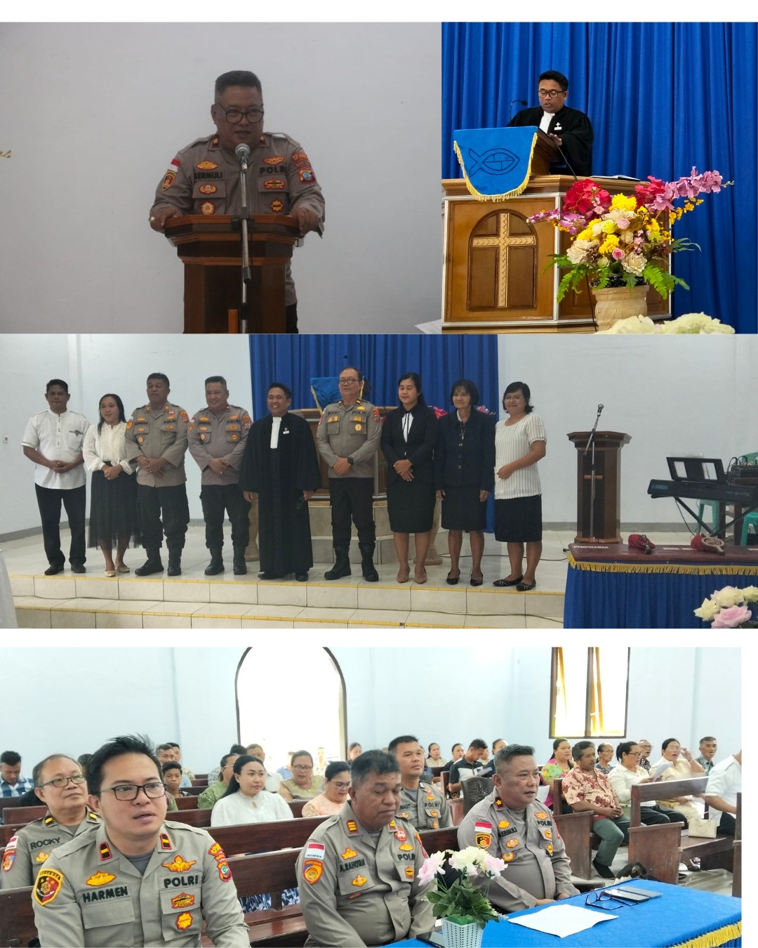 Dalam kesempatan tersebut, Wakapolres Kepulauan Sangihe Kompol Arivalianto Bermuli, S.H., M.H. menyampaikan pesan kamtibmas kepada seluruh jemaat. Ia mengimbau masyarakat agar selalu waspada terhadap berbagai potensi gangguan keamanan di wilayah Kabupaten Sangihe.