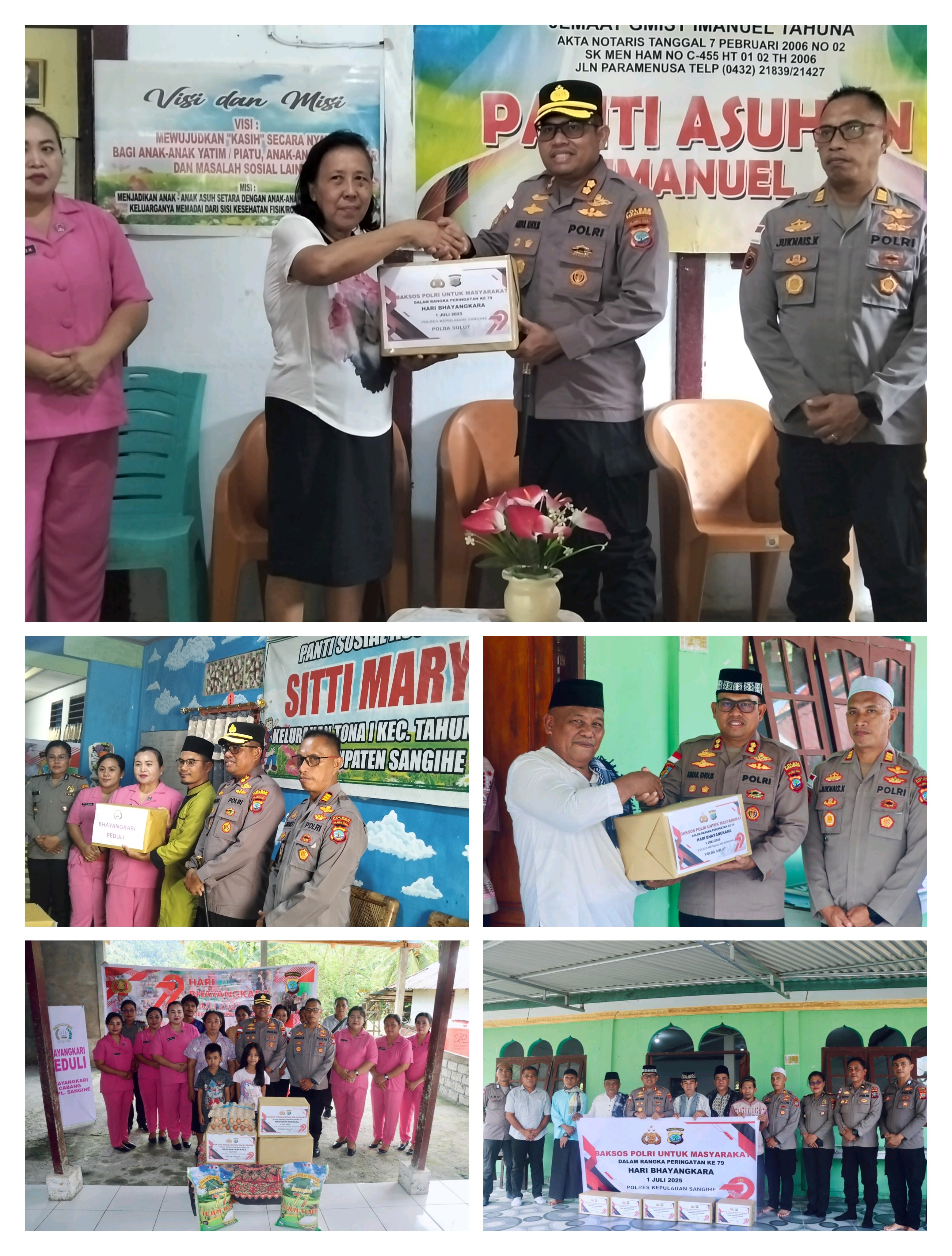 Tahun Manadolive.co.id – Dalam rangka memperingati Hari Bhayangkara ke-79, Kepolisian Resor (Polres) Kepulauan Sangihe menggelar kegiatan Jumat Curhat yang dirangkaikan dengan penyaluran bantuan sosial kepada masyarakat, Jumat (20/6/2025).