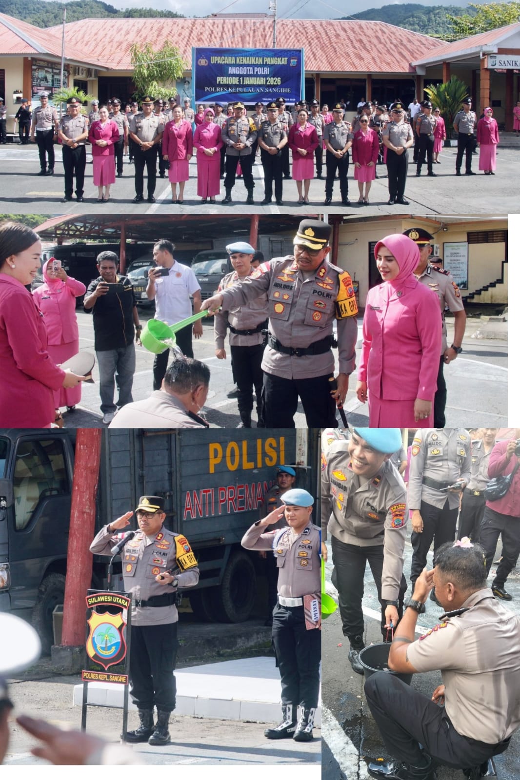 Tahuna, Manadolive.co.id-Kepolisian Resor (Polres)Kepulauan Sangihe menggelar Upacara Kenaikan Pangkat Anggota Polri Periode 1 Januari 2026, Rabu (31/12/2025) pagi.