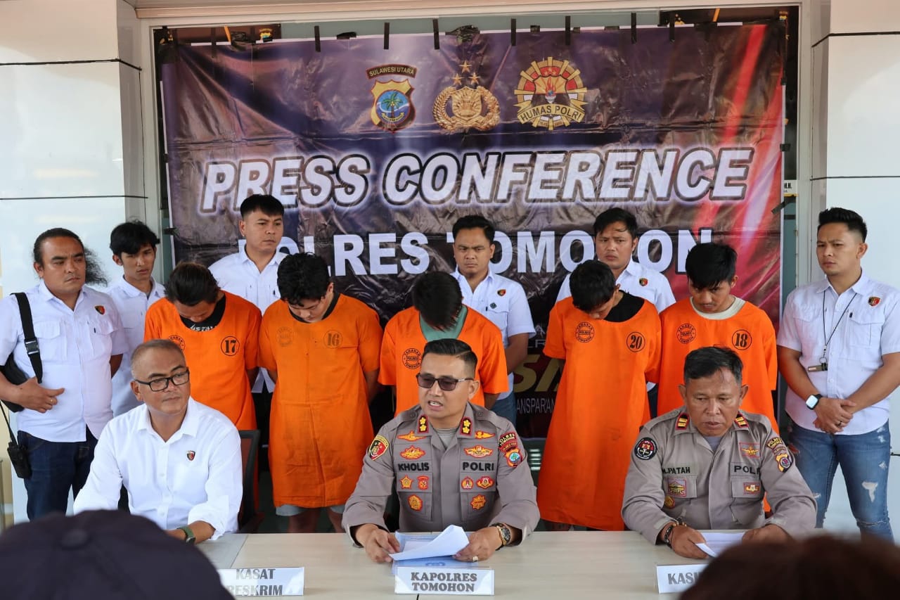 “Para tersangka curanmor yang diamankan masing-masing RT alias Rangga (31), warga Bumi Nyiur, dan EK alias Eben (34), warga Teling Atas, sedangkan diduga penadah adalah CA alias Christalino (23), warga Kolongan Minut, SD alias Sekly (20), warga Tahuna, serta RM alias Riky (27), warga Paniki Satu,” jelas Kapolres.