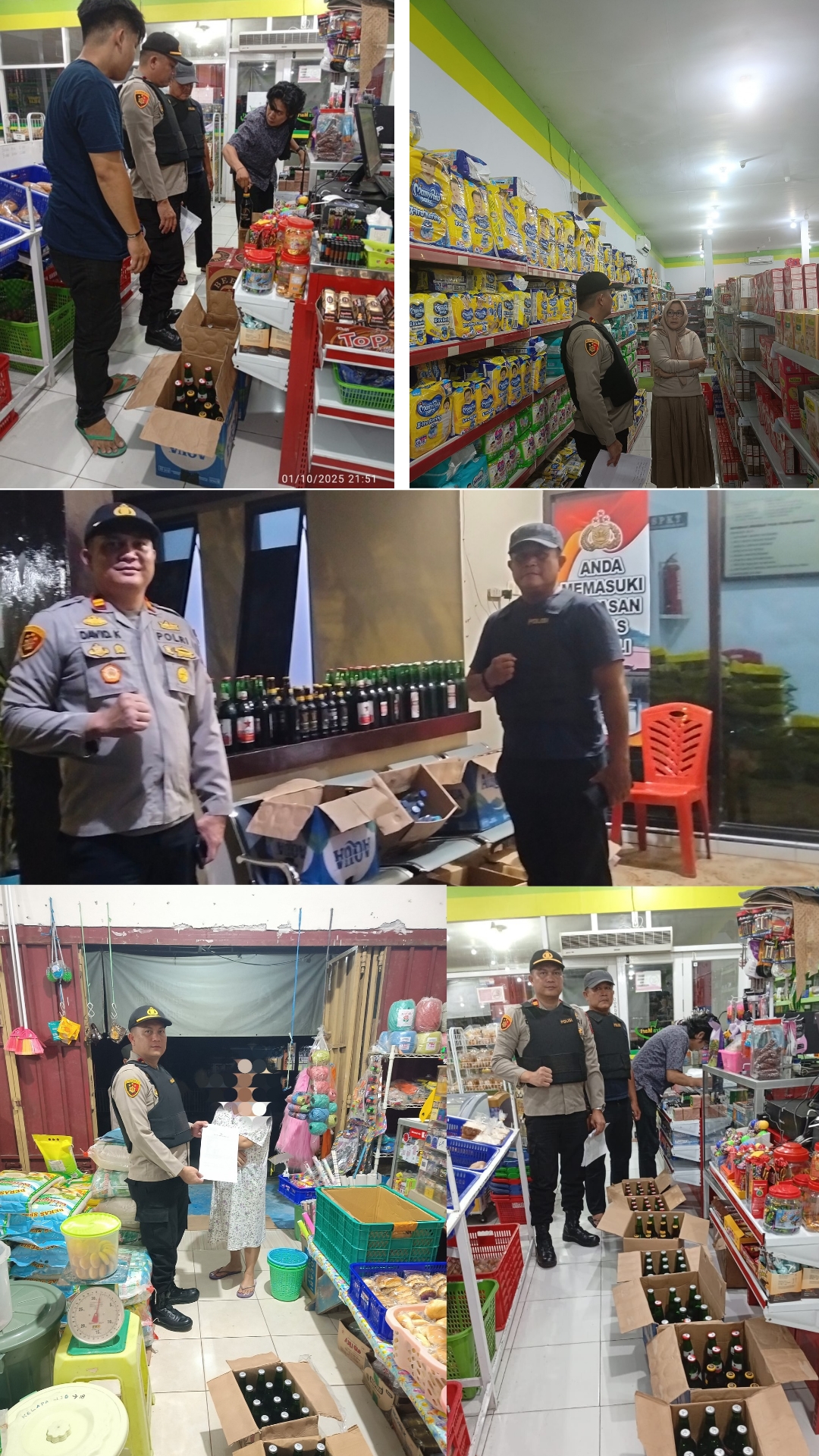 Dalam razia tersebut, aparat kepolisian menyisir sejumlah kios dan toko yang kedapatan menjual minuman beralkohol tanpa izin edar. Hasilnya, petugas berhasil mengamankan ratusan botol miras dari empat lokasi berbeda, termasuk minuman tradisional jenis Cap Tikus.