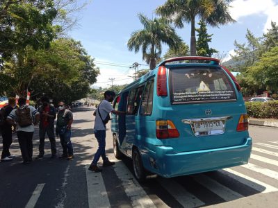 BITUNG, MANADOLIVE. CO. ID- Bertempat di jalan AA Maramis 46 tepat depan SMKN 1 Bitung dan SMKN 2 Bitung hari Rabu 13 Oktober 2021 siang,Badan Penanggulangan Bencana Daerah kota Bitung bersama Persatuan Wartawan Indonesia PWI kota Bitung turun ke jalan membagikan masker kepada para pelajar maupun pengguna jalan di atas motor roda dua dan mobil angkutan kota.