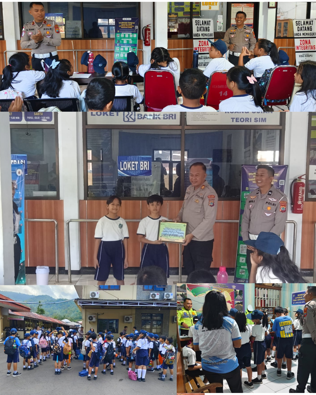 Dalam kegiatan tersebut, para siswa diajak berkeliling lingkungan Mapolres untuk melihat secara langsung aktivitas anggota kepolisian. Selain itu, petugas juga memberikan sosialisasi dan imbauan terkait pentingnya tertib berlalu lintas.