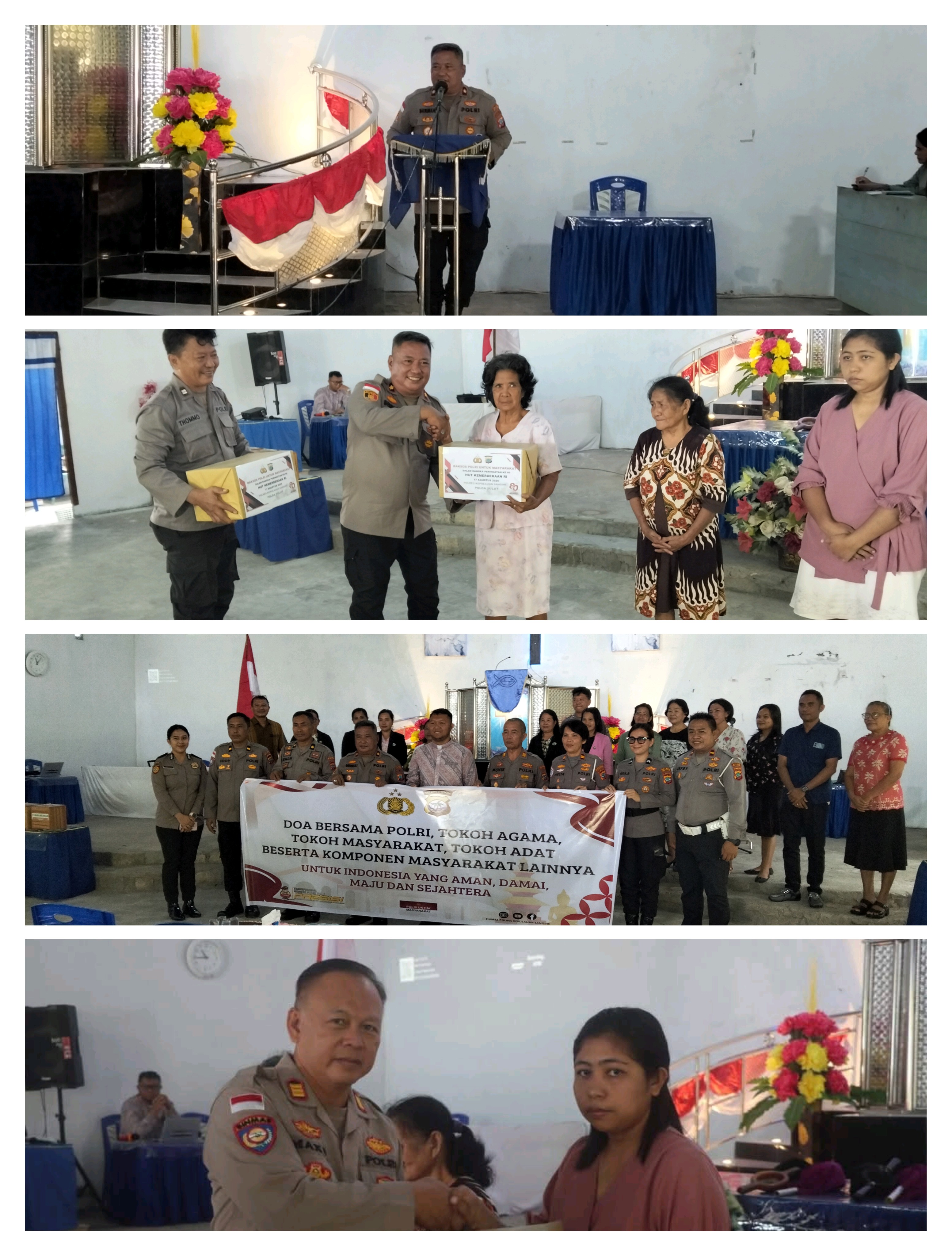 Dalam kesempatan itu, Wakapolres turut menyerahkan bantuan sosial kepada warga jemaat yang membutuhkan.