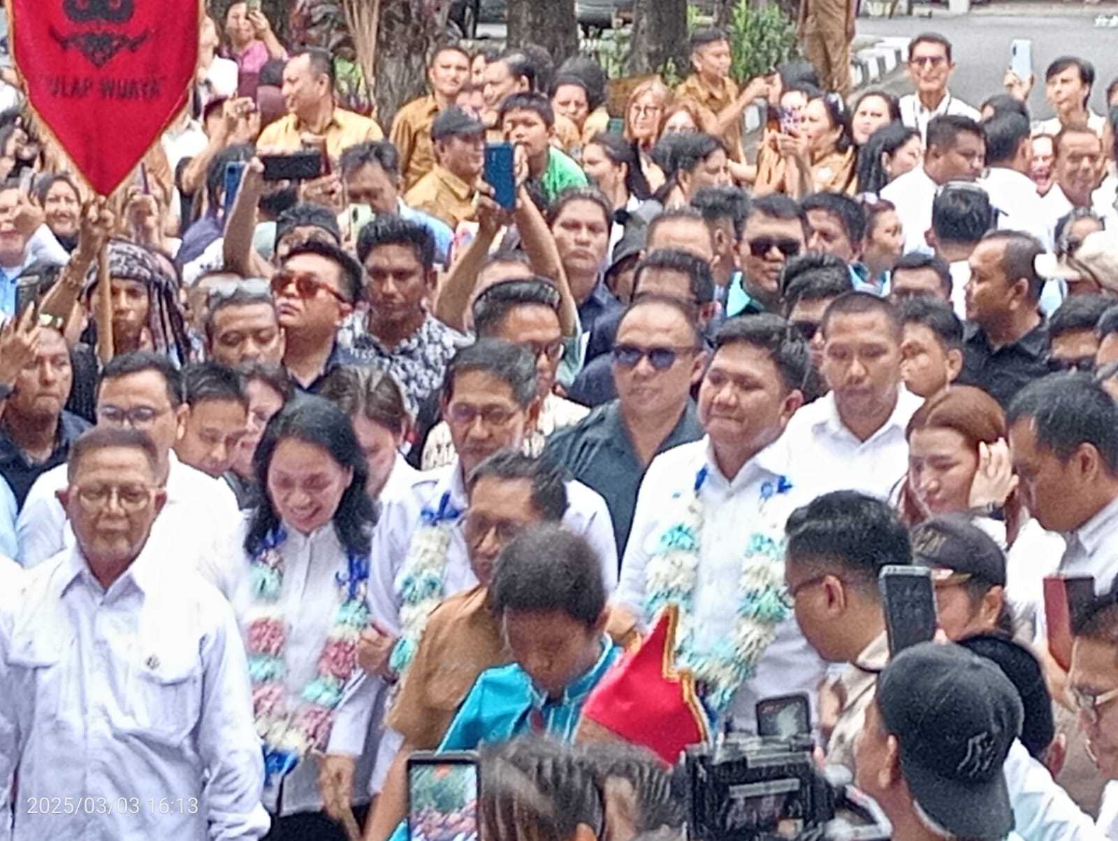 Kini Wali Kota Bitung Hengky Honandar, SE dan Wakil Wali Kota Randito Maringka menginjakkan kaki perdana di kantor walikota hari Senin 3 Maret 2025.