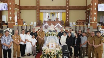 Wali Kota Tomohon Caroll Senduk SH, melayat ke Gereja Santo Fransiskus Xaverius Kakaskasen pada Selasa (3/3/2026), atas meninggalnya Pastor Kornelius Ciprianus Motoh, Pr., yang tutup usia pada umur 66 tahun 4 bulan 2 minggu 3 hari.