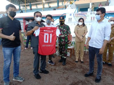 BITUNG, MANADOLIVE. CO. ID- Bertempat di lapangan Stadion Dua Sudara Manembo-nembo Tengah hari Senin 8 November 2021, Walikota Bitung Ir.Maurits Mantiri, MM melepas tim Persbit ke Liga 3 Indonesia sekaligus meresmikan Jersey bola Persbit.