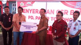Dalam kesempatan tersebut Bank BRI menyerahkan Bantuan CSR senilai 200 Juta Rupiah kepada Walikota dan langsung di teruskan ke PD Pasar Kota Tomohon .