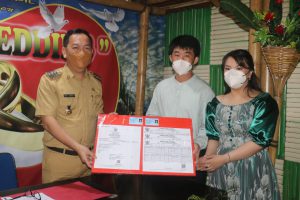 Selanjutnya Walikota Tomohon menyerahkan dokumen Kutipan Akte Perkawinan, Kartu Keluarga, KTP elektronik kepada kedua pasangan suami isteri.