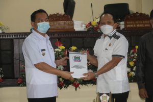 Pada kesempatan ini, Walikota Tomohon menyerahkan dua Ranperda kepada Ketua DPRD Kota Tomohon.