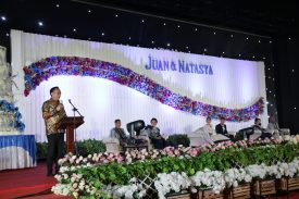 TOMOHON, MANADOLIVE.CO.OD- Walikota Tomohon Caroll J A Senduk SH hadir dalam resepsi pernikahan Juan dan Natasya (Keluarga baru Gerungai – Supit), dilaksanakan di Taman Asri Edelweis Kolongan Tomohon,
