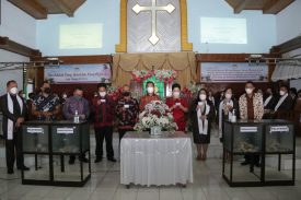 Tampak hadir , Kepala DISKOPUKM Prov. Sulut Ir. Ronald T. H. Sorongan M.Si mewakili Gubernur Prov. Sulut. , Para Pendeta Pelayan, Ketua Panitia Hari – hari Raya Besar Gereja, Pnt. Henri Tulung ST serta seluruh Panitia, Jajaran Pemkot Tomohon bersama Unsur jemaat. (edel)