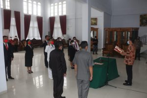 TOMOHON, MANADOLIVE.CO.ID- Pelantikan dan Pengambilan Sumpah/Janji Pejabat Administrator di Lingkungan Pemerintah Kota Tomohon di Aula Rumah Dinas Walikota Tomohon, Kamis (03/02/2022)