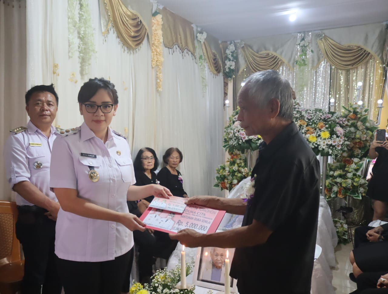 Sebagai wujud nyata kepedulian dan pelayanan pemerintah kepada masyarakat yang mengalami kedukaan, Wakil Wali Kota Tomohon juga menyerahkan langsung santunan duka dari Pemerintah Kota Tomohon kepada pihak keluarga. Selain itu, turut diserahkan akta kematian almarhumah dan Kartu Keluarga (KK) baru, sebagai bagian dari layanan administrasi kependudukan yang responsif dan cepat dari Pemerintah Kota Tomohon. (Edel)