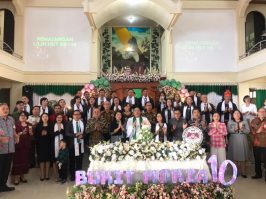 Tampak hadir, Mewakili Gubernur Sulawesi Utara Daniel Mewengkang selaku Kepala Dinas Perindustrian dan Perdagangan Provinsi Sulut, Anggota DPRD Kota Tomohon Hudson Bogia, Ketua BPMW Tomohon Satu sekaligus Ketua BPMJ GMIM Bukit Moria Rurukan Satu Pdt. Esther Rumokoy-Dengah Para Pendeta Jemaat GMIM Bukit Moria Rurukan Satu, Jajaran BPMW Tomohon Satu dan Lima, Seluruh BPMJ, Pelayanan Khusus, Jemaat Kolom 1 sampai 12, Jajaran Pemerintah Kota Tomohon serta undangan lainnya. (Edel)