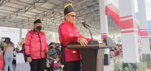 BITUNG, MANADOLIVE- Bertempat di lapangan kantor walikota Bitung hari Jumat 13 Mei 2022, Pemerintah Kota Bitung melaksanakan upacara bendera memperingati hari pendidikan Nasional dengan pemimpin upacara Kadis Pendidikan dan Kebudayaan Eugenie Nona Mantiri memakai pakaian adat Kabasaran Minahasa.